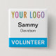 Volunteer Pin Back Badge Custom Logo Square Button