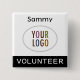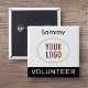 Easily personalise our square pin back button name badge with your organisation logo, volunteer name, or other custom text. It attaches with a safety pin back. Sold in black and other colours, and all colours are customisable. Our square buttons are 2 inch x 2 inch. Made in USA. No minimum order quantity and no setup fee.