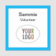 Personalise our professional square name badge with your company logo, employee name, professional job title, or other custom text. Available with a safety pin or a magnetic fastener (do not use with pacemakers). Designed with a sky blue border and other colours. All colours are customisable. The dimensions are 2 inch x 2 inch. No minimum order quantity and no setup fee.