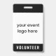 Customise this simple modern volunteer event staff badge with your logo. If your logo is square, it will fill up the white space entirely. If your logo is not square, it will show on a black background. The back of the badge can be personalised with the event name and date or year, or you can delete both to have an all black back. This minimalist volunteer staff badge is ideal for special events, festivals, concerts and conventions.