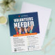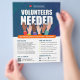 Announce your need for volunteers with this professional flyer featuring clean hand illustrations, blue abstract shapes background, and clean space for wording. Customise the template to your liking.