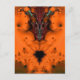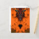 This postcard features an abstract fractal design of a voodoo spirit in shades of red, black, green and blue. His horns are blue and he is surrounded by a brilliant orange gaseous cloud.