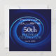 Abstract digital art with a blue spiral. Design on square flat card invitation with text for a modern 50th Birthday Celebration. Matching Birthday Save the Date (postcard), guest book (hard cover and spiral notebook), party supplies and more...