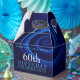 Abstract digital art with a blue spiral. Design on gable favour box with text for a modern 60th Birthday Celebration. Matching Birthday invitation, Save the Date (postcard), party supplies and more...
