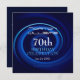 Abstract digital art with a blue spiral. Design on square flat card invitation with text for a modern 70th Birthday Celebration. Matching Birthday Save the Date (postcard), guest book (hard cover, spiral notebook and binder), party supplies and more...