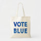 Encourage people to vote for liberal democrats in elections with a tote bag with the words "VOTE BLUE" in a bold blue watercolor font on a natural background for a modern typography design.
