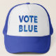 Encourage people to vote for liberal democrats in elections with a hat with the words "VOTE BLUE" in a bold blue watercolor font on a white background for a modern typography design. You can choose hats with other trim colours in the sidebar.