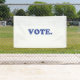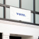 "Vote" blue letters, white background Banner
