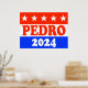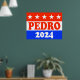 Classic retro American Flag-inspired vintage poster design. Proudly American red, white, and blue patriotic colour scheme. The candidate's name is PEDRO in red Cooper Standard typography. Perfect funny political gift for conservative Republicans and liberal democrats across the great USA. The poster declares in red, white, and blue: Pedro 2024