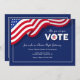 A patriotic invitation in blue with an American flag. Bold white letters read: VOTE! The card is easy to customise with your wording, font, font colour and choice of six paper types. Not exactly what you're looking for? All our products can be custom designed to meet your needs at no extra charge. Simply contact us at askpixieprints@aol.com
