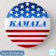 Vote Kamala Harris Custom Text USA Flag Democrats button. For a Kamala Harris presidential campaign supporter design, a bold and empowering layout that combines typography and patriotic symbols to create a striking visual statement. At the centre of the design, feature Kamala Harris's name in large, elegant typography. Use a modern font to convey a sense of forward-thinking and progress. To enhance the design's visual appeal, add a subtle, polished finish with a shadow effect, giving the typography a sense of depth and dimension. This approach not only highlights Kamala Harris’s name but also ensures the flag’s colours and patterns stand out vibrantly. This product aims to celebrate Kamala Harris’s candidacy with a strong, patriotic flair, using typography and the U.S. flag to create a powerful, supportive statement for her presidential campaign.