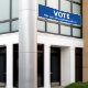A banner that says Vote (like your voting rights depend on it) with a blue background and the words in white.