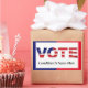 VOTE Text filled with Flag colours with a blue and red border. Add your candidate's name in the space provided. Distinctive.