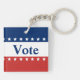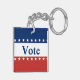 This red, white, and blue keychain has the word 'Vote' in the centre. The text is dark blue. The top stripe is blue and has white stars. The centre stripe is white. The bottom stripe is red with white stars.