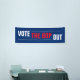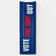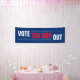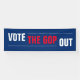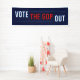 Vote the GOP Out red white and blue 2020 election banner. As shown, red and white text on a blue background. Decorative white lines next to Vote and Out draw the eye to view the pattern repeatedly.