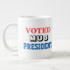 This design from our mug collection has Abraham Lincoln's stove-pipe hat and famous beard on the side of this jumbo mug, with the words 'VOTED MUG PRESIDENT' on the opposite side. You can customise it by uploading and placing the picture of your voted one between the hat and beard, you can drag the layer at the bottom of the other layers situated on your right to place picture behind hat image. Makes an 'executive' gift for Presidents' Day!