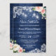 Vow Renewal Rustic Blue String Lights Lace Floral Invitation