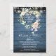 Featuring a pretty watercolor floral greenery garland and string lights, this chic botanical vow renewal invitation can be personalised with your special anniversary information on a blue rustic wood panels background. The reverse features a matching floral garland framing your anniversary dates on a rustic wood panels background. Designed by Thisisnotme©