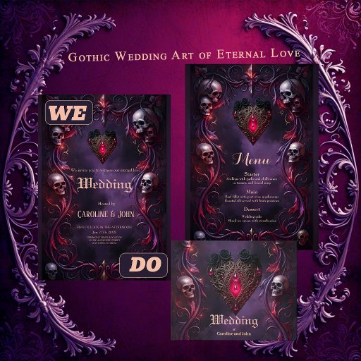 Vows Beyond the Veil – Gothic Wedding Art of Eternal Love. In a velvet dusk where roses bloom in shadow and bones remember love, two souls are bound beyond the veil of time. This gothic wedding artwork tells a quiet story of devotion that does not fade, of vows whispered beneath dark skies, where love is not frightened by death —but strengthened by it. Ornate skulls frame a sacred union, a jeweled heart glowing with the promise of forever, not as innocence, but as choice.