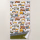 Vroom! Vroom! Your little boy will love this adorable custom car pattern with its own road! Beach towel has a bus, taxi cab, garbage recycling truck, construction vehicles, tow truck, and more. There is also a road and a green corner for your little one's first name. This towel would make an adorable addition to your young kid's trip to the summer pool!
