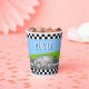 Vroom Vroom Racing Car on a Road Boy Birthday Party Paper Cups. Get ready for a wild ride! Join us for an unforgettable birthday party with a car racing theme - simple car with your age number. Your little racer will take the wheel and drive through the natural landscape. Come ready for a fun-filled day of games, treats, and of course, lots of vroom, vroom, vroom! Add your name and the age number on the car.