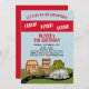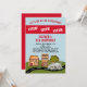 Vroom Vroom Vroom Racing Car on a Road with Houses Boy Birthday Invitation. Let's go on a adventure! Join us for an unforgettable birthday party with a car racing theme - simple car with your age number on a road with houses and tree. Your little racer will take the wheel and drive through the street. Come ready for a fun-filled day of games, treats, and of course, lots of vroom, vroom, vroom! Add your birthday information and the age number on the car.