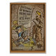Drawn in browns and yellow woman in coat and bandanna looking at poster recruiting women for the WAAF.