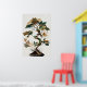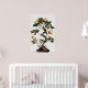 Wabi-Sabi art of a beautifully detailed tree with swirling branches and a variety of green and gold leaves standing elegantly against a neutral backdrop. The leaves display a blend of colours and patterns, adding depth and interest to the composition.