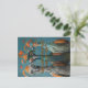 Quirky birds vibrant teal backdrop, oversized glasses eccentric bird style, playful orange feather accents charm, whimsical postcard joyful unique design, wackadoodle greeting cheerful colourful vibe, vibrant birds charming artistic card, fun quirky postcard design appeal, lively teal birds playful scene, eccentric postcard bright quirky charm, whimsical artistic postcard joyful greeting.
