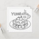A square flat card. One side is a colouring page with coffee and waffles. The back is blank so you can keep and colour for yourself or you can send it to a friend and write a note on the back.