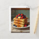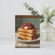 Cute food themed postcard. An illustration of waffles with strawberries, blueberries, syrup and butter on a pretty antique plate.