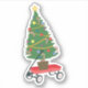 Christmas on a roll... Cute Christmas art design. Red wagon taking a Christmas tree for a ride. Adorable design ideal for Christmas gifts and parties. Perfect for Christmas decorations, apparel and presents.