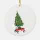 Christmas on a roll... Cute Christmas art design. Red wagon taking a Christmas tree for a ride. Adorable design ideal for Christmas gifts and parties. Perfect for Christmas decorations, apparel and presents.