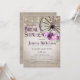 Rustic wagon wheel and purple floral bridal shower invitation with barn wood and string lights design. Elegant rustic shower invitation with modern text layout can be changed as preferred.
