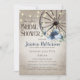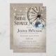 Rustic wagon wheel and dusty blue floral bridal shower invitation with barn wood and string lights design. Elegant rustic shower invitation with modern text layout can be changed as preferred.
