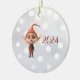 Waifish Girl Christmas Elf Ceramic Ornament