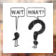 Wait, What. Illustration of a comma and a question mark. Funny idiom exclaimed when someone suddenly realises something isn't right. The comma waits, the question mark asks. Get it?