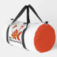 This white duffle bag features a humourous cartoon goldfish with thought bubbles showing a slice of pizza and a question mark, and the text "Wait... What was I doing?" This quirky design is perfect for those who often find themselves distracted or forgetful. Edit colour of the bag caps and body in the Design tool to your favored colours.