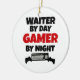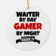 This text design features the trendy phrase "Waiter by Day Gamer by Night" and is perfect for any waiter who loves playing computer games or video games.