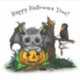 Waiting for Halloween , Cute Bat and Raven, Coloured Pencil Drawing for Kids by Krisi ArtKSZP . More Products >>> In Shop ArtKSZP >>> Category Halloween >>> Waiting for Halloween Cute Bat and Raven