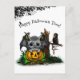 Waiting for Halloween , Cute Bat and Raven Postcard