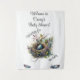 Waiting for Our Baby Customisable Tapestry. Get ready to celebrate the arrival of your new little one with our 'Waiting for our baby' baby shower supplies collection. This charming image features a bird nest with a single egg, symbolising the anticipation of your baby's arrival, set against a beautiful colour scheme of cranberry, smokey blue, neon and dark lime, along with natural nest and tree limb hues. This design can be considered a Boho Style, gender neutral collection. Complete your baby shower setup with matching paper cups, paper plates, paper napkins, a 60" x 104" 100% cotton tablecloth and a 50" x 60" polyester tapestry featuring the same delightful design. For a more elegant touch, the tapestry is customisable so you are able to add a message at the top to use as a welcome sign. Celebrate this special occasion in style with our adorable bird nest theme!