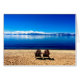 These two Adirondack chairs on a lonely Lake Tahoe beach are ready for summer visitors who will come when the snow has melted off the distant mountain tops.