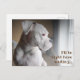 An adorable white boxer waiting by a window on a nicely printed postcard. The "I'll be right here waiting" text is customisable.
