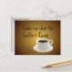 Wake me when the coffee's ready. This funny and cute coffee lover gift is perfect for the woman or friend who can't start their day without that morning cup. Dark chocolate brown and gold background with espresso coffee, beans and retro styled text.