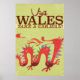 Wales Caravan Vacation vintage poster. retro Welsh red dragon holiday travel poster print.