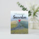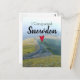 This gorgeous postcard shows a picturesque view of the top of the Snowdonia mountain range in Wales with 'I conquered Snowdon' in beautiful typography. The landscape photo features the mountain's small railway tracks, with a horizon view of Welsh mist. A perfect souvenir for someone who conquered Snowdon mountain.
