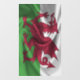 Window cling with the flag of Wales in wavy fabric style design. This design features the Welsh flag colours and design with a beautiful waving material textured effect. This flag design is a great way to show you are proud to be from Wales.