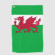 Flag of Wales. The flag of Wales (Welsh: Baner Cymru or Y Ddraig Goch, meaning "The Red Dragon") consists of a red dragon passant on a green and white field. As with many heraldic charges, the exact representation of the dragon is not standardised and many renderings exist. It was officially recognised as the Welsh national flag in 1959.