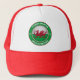 A patriotic design featuring a rounded 3D Welsh flag inset into an outer ring colored in Welsh colors. The top text is of Celtic origin and translates as Wales Forever. The bottom text is the English meaning of the top text.